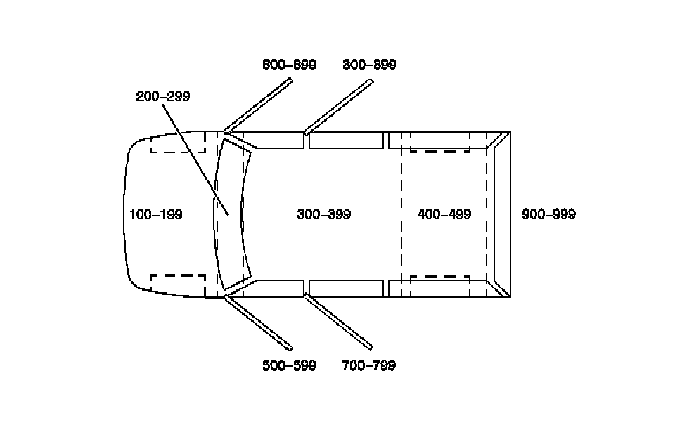 All grounds, in-line connectors, pass-through grommets, and splices have identifying numbers that correspond to where they are located in the vehicle. The table explains the numbering system.