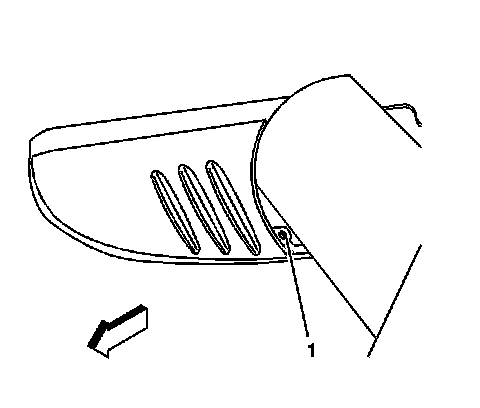 1. Carefully move the outside rear view mirror (ORVM) assembly forward in order to gain access to the lens retaining screw (1) located underneath the assembly, near the pivot point.