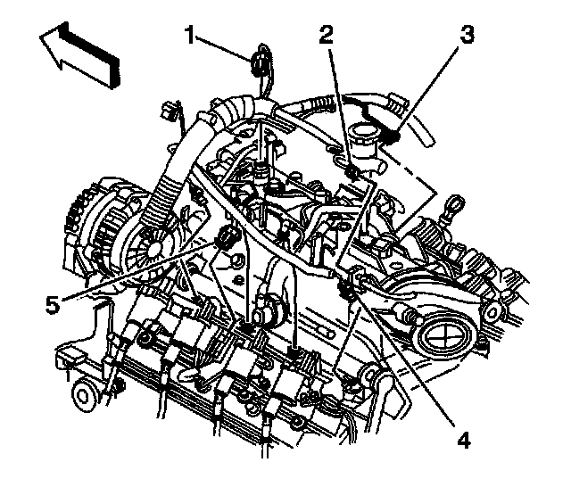 2. Disconnect the main electrical connector (5) to the ignition coil wire harness.