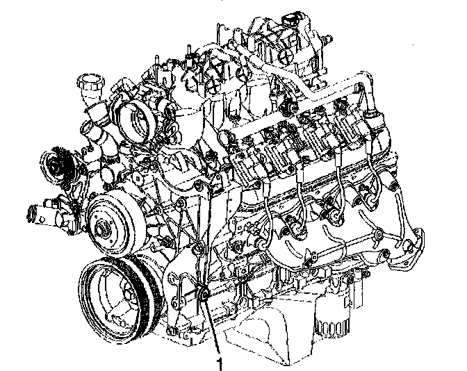 2. Locate the engine block left front oil gallery plug (1).