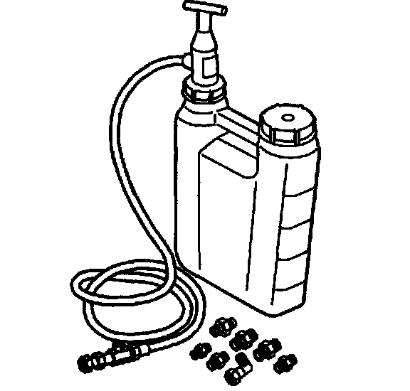 5. Pump the handle on the J 45299 in order to flow a minimum of 1 - 1.9 liters (1 - 2 quarts) engine oil. Observe the flow of engine oil through the flexible hose and into the engine assembly.