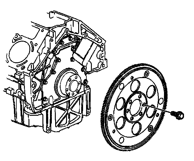 2. Apply threadlock GM P/N 12345382 (Canadian P/N 10953489) or equivalent to the threads of the flywheel bolts.