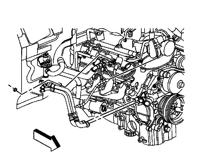 13. Using J 38185, reposition the auxiliary heater inlet and outlet hose/pipe clamps at the water pump.