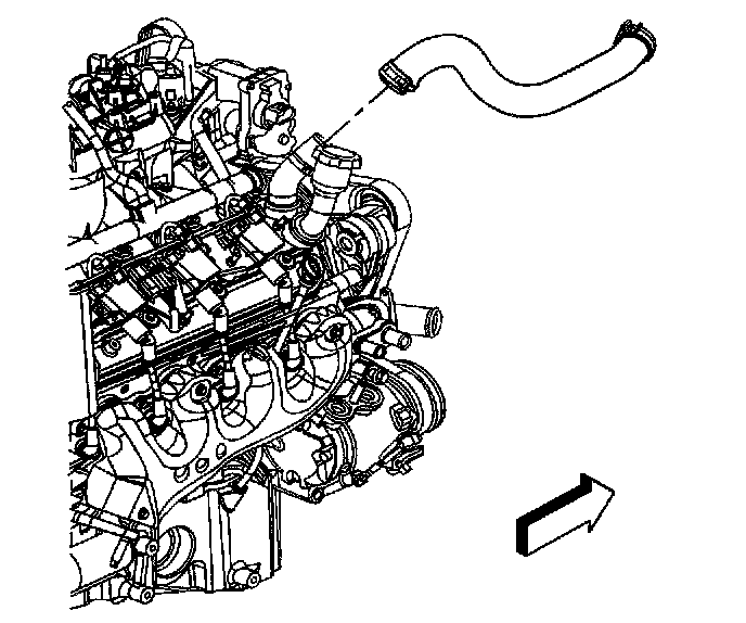 9. Using J 38185, position the outlet hose clamp at the water pump.