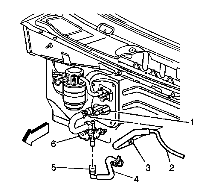 3. Position the outlet heater hose clamp (6) at the outlet hose fitting using J 38185.