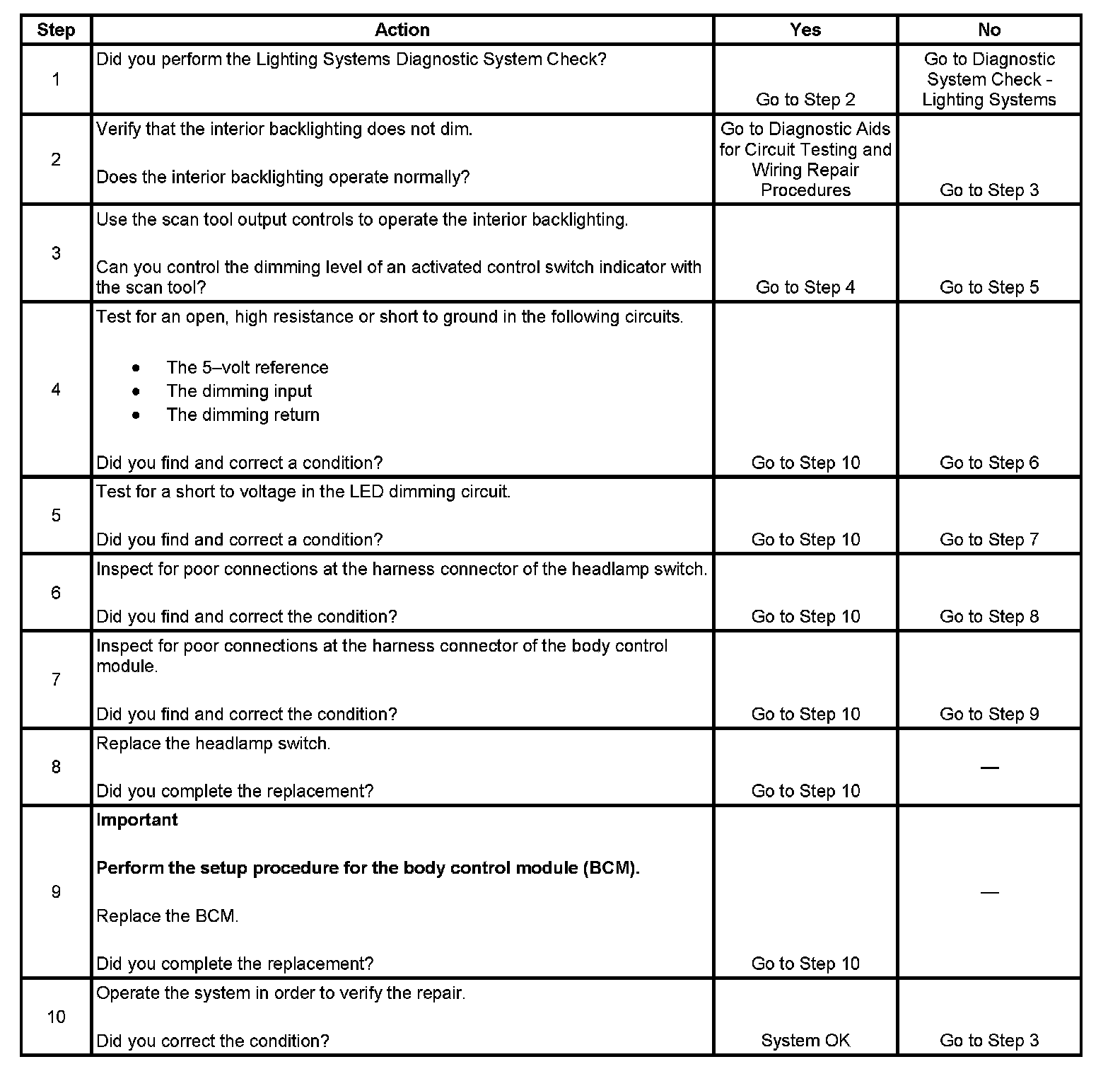 Interior Backlighting Does Not Dim