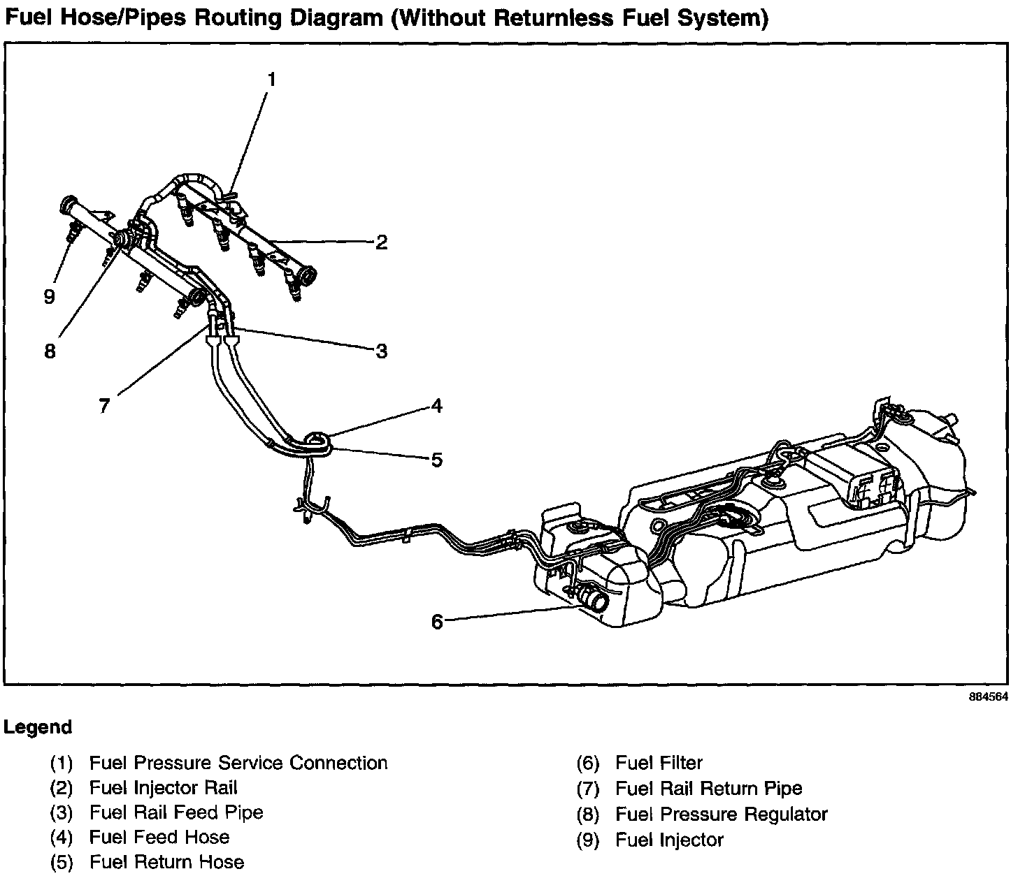 Fuel Hose/Pipes Routing Diagram (Without Returnless Fuel System):