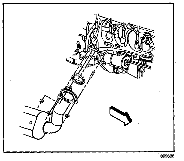 11. Install the nuts securing the right catalytic converter to the exhaust manifold.