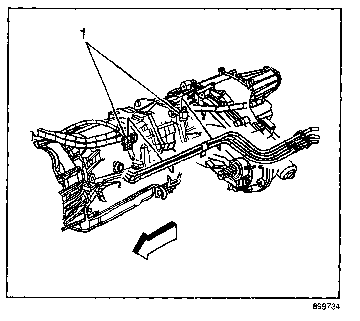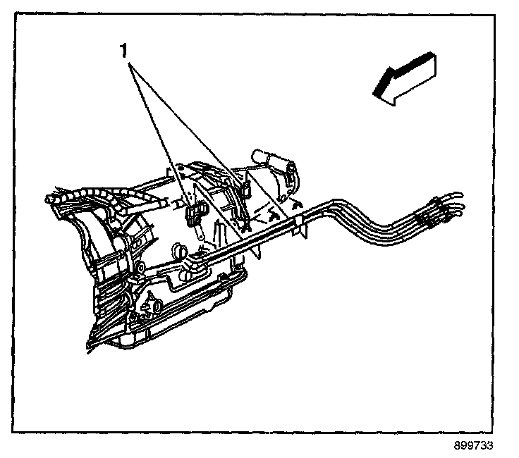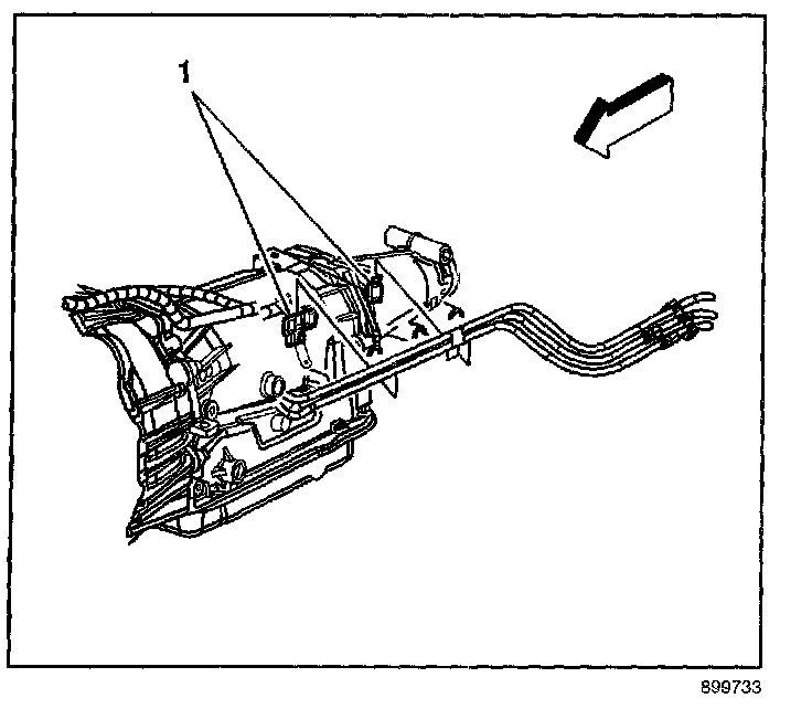 9.1. Install the EVAP/fuel hose/pipe assembly to the retaining clips (1) on the transmission.