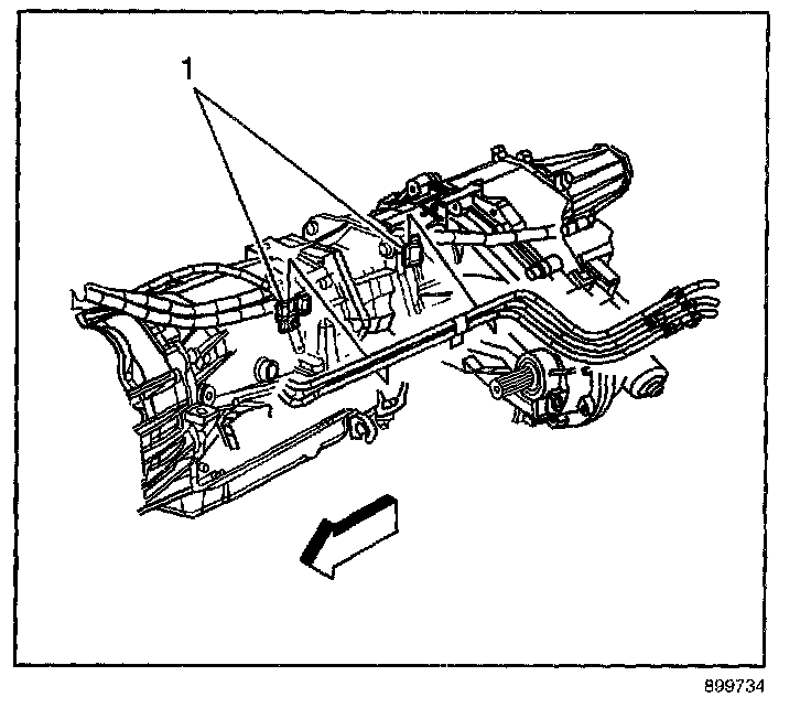 9.4. Remove the EVAP/fuel hose/pipe assembly from the retaining clips (1) on the transmission.