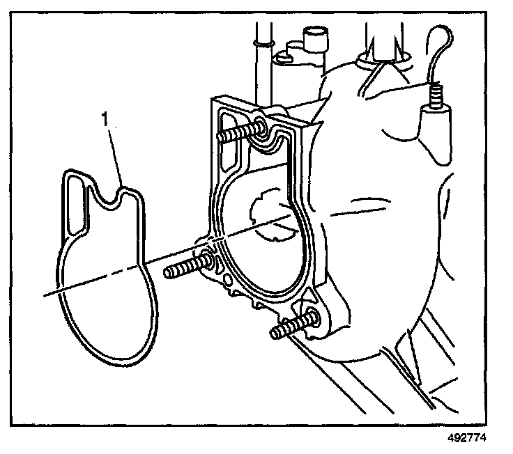 7. Remove the throttle body and gasket. Discard the gasket (1).