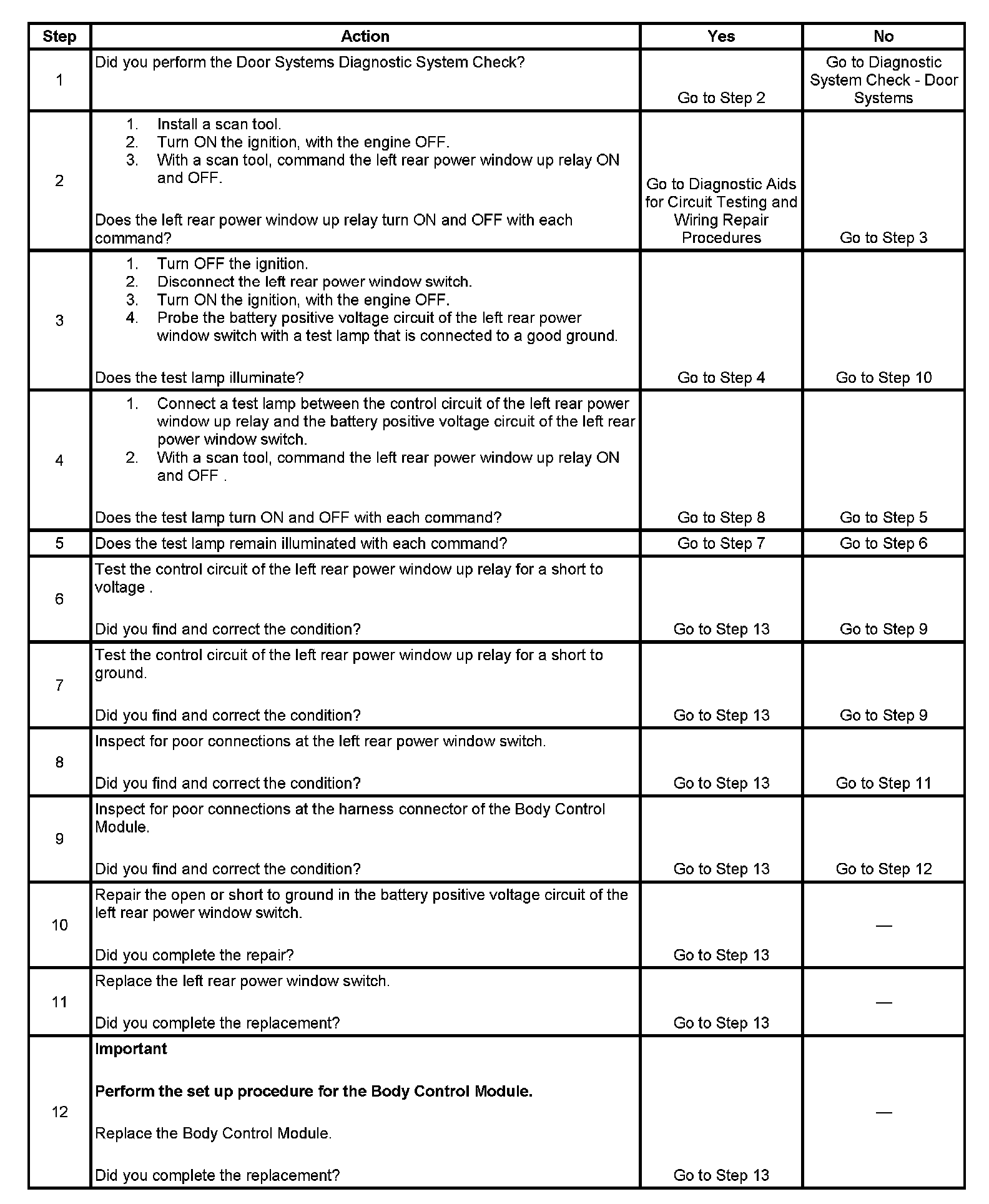 - When the BCM has grounded the left rear power window up relay control circuit and the control circuit is shorted to battery positive voltage.