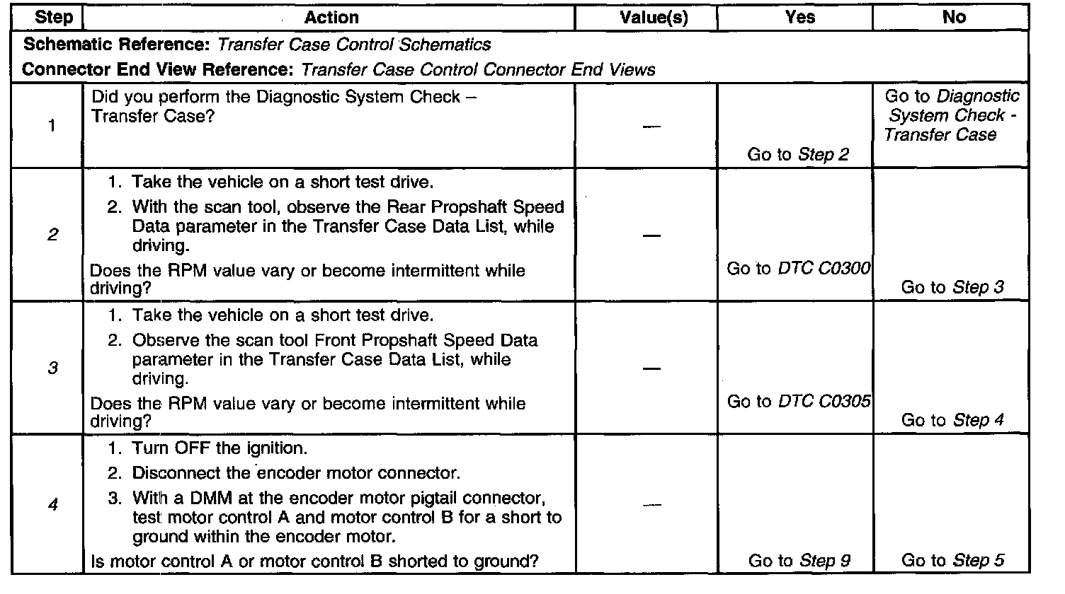 6. This step tests the motor control A and motor control B circuits for an open, short to ground or high resistance between the encoder motor and the transfer case shift control module.