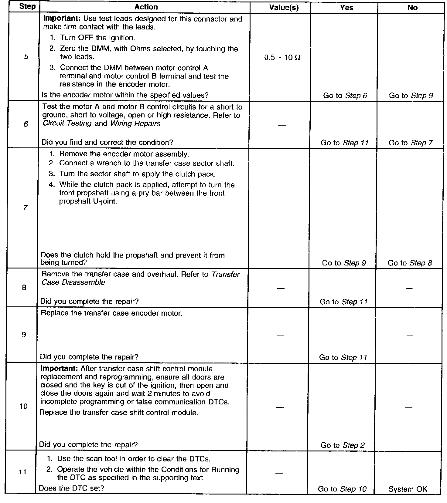 7. This step determines whether the transfer case is mechanically operating properly.
