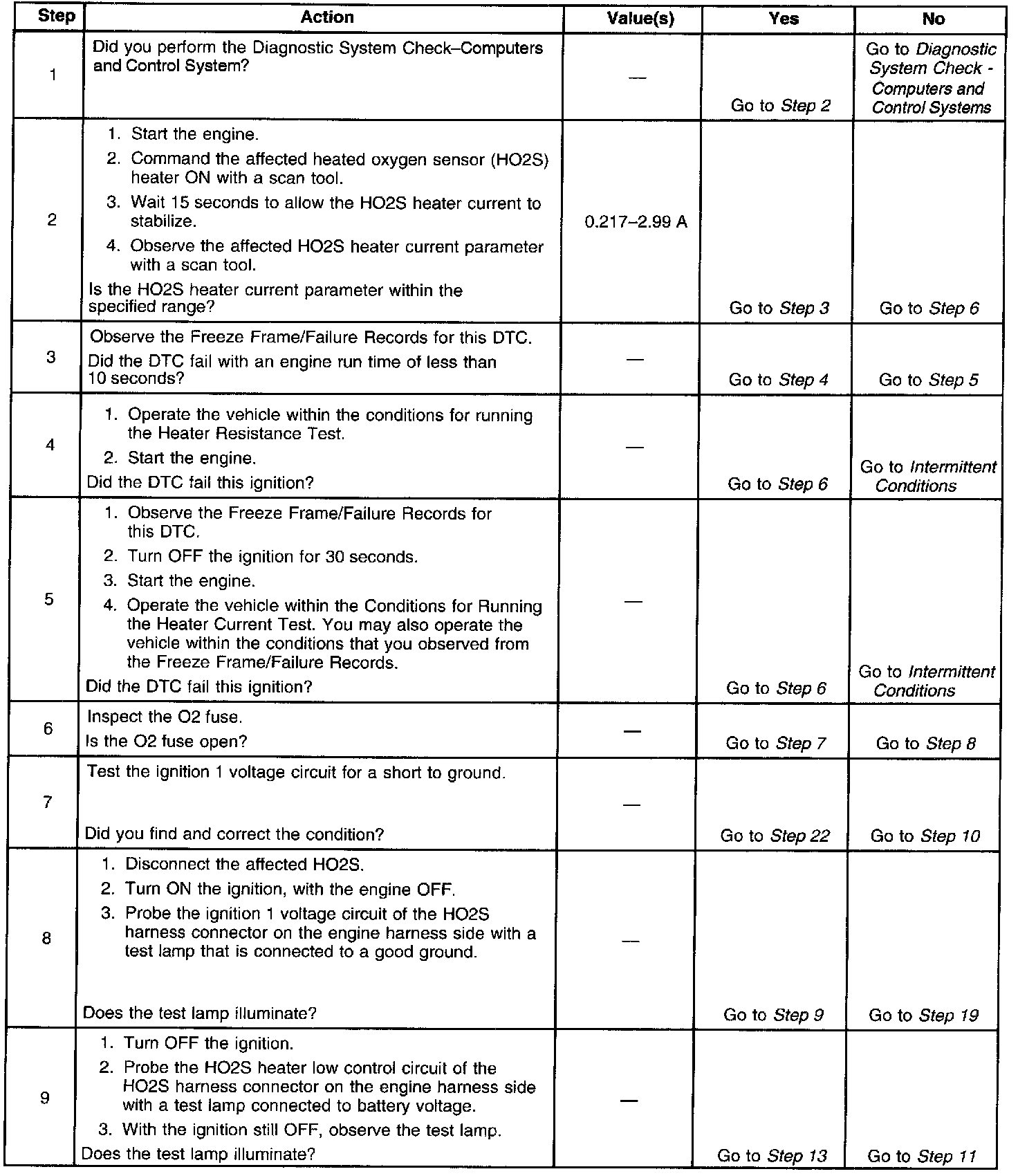 For DTCs P0135 or P0141 the PCM detects that the affected HO2S heater calculated resistance is not within an expected range at engine start-up.