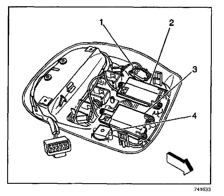 4. Connect the electrical connector to the OnStar(R) microphone (1).