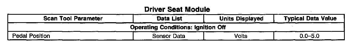 Scan Tool Data List - Driver Seat Module: