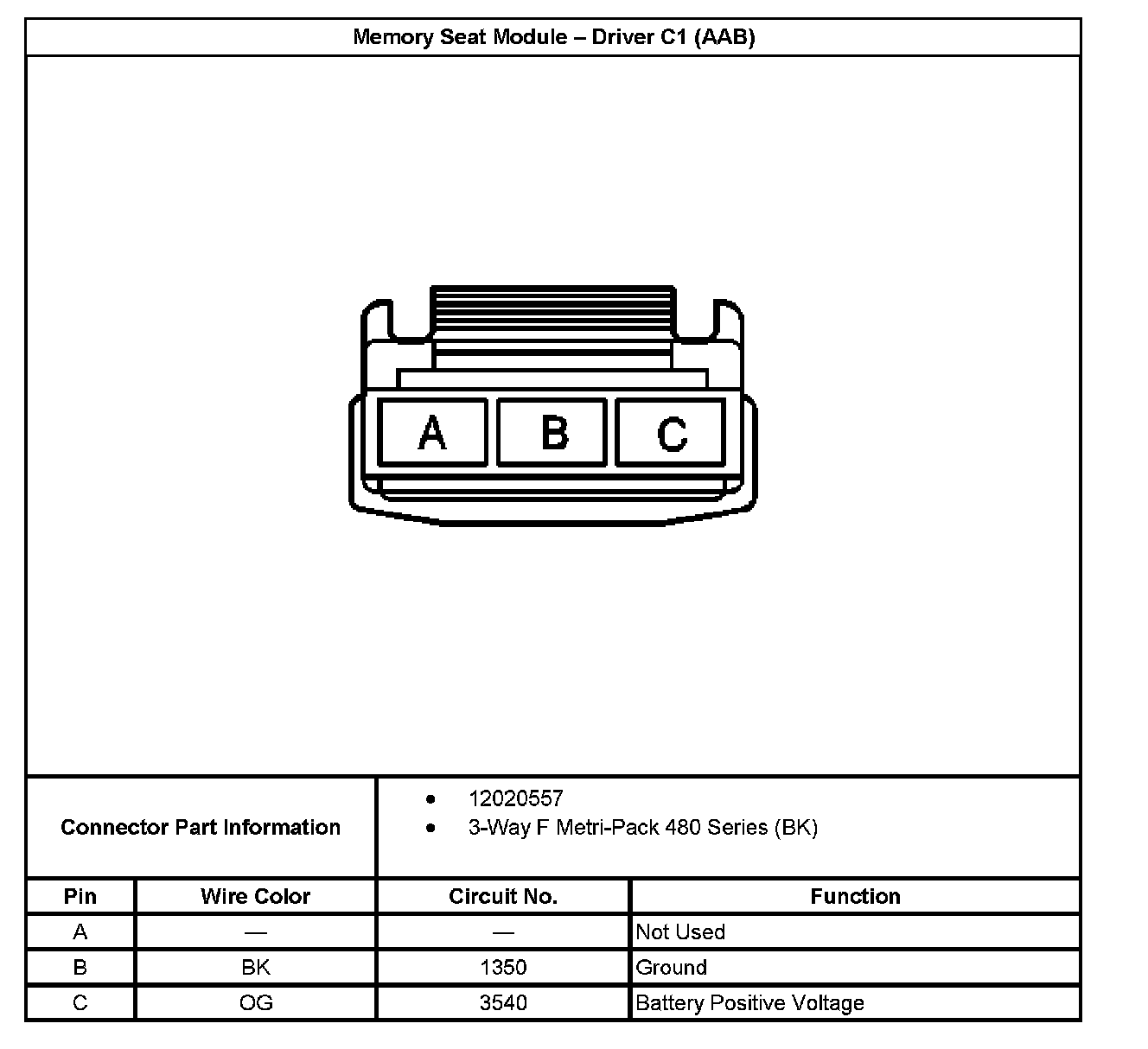 Memory Seat Module - Driver C3 (With RPO Code AAB):