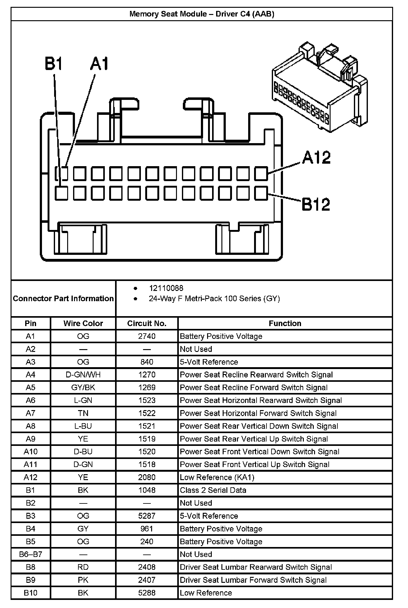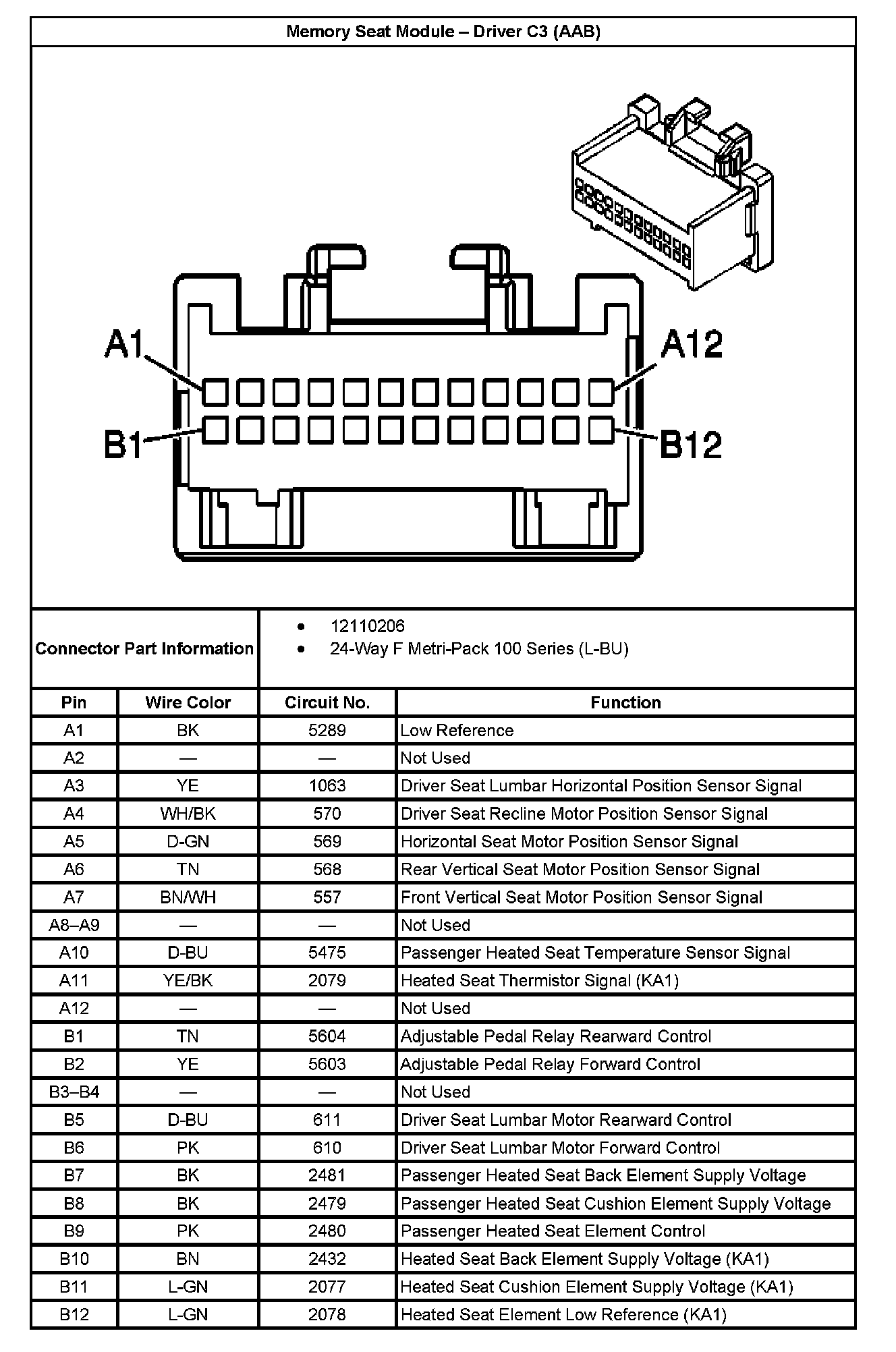 Memory Seat Module - Driver C2 (With RPO Code AAB):