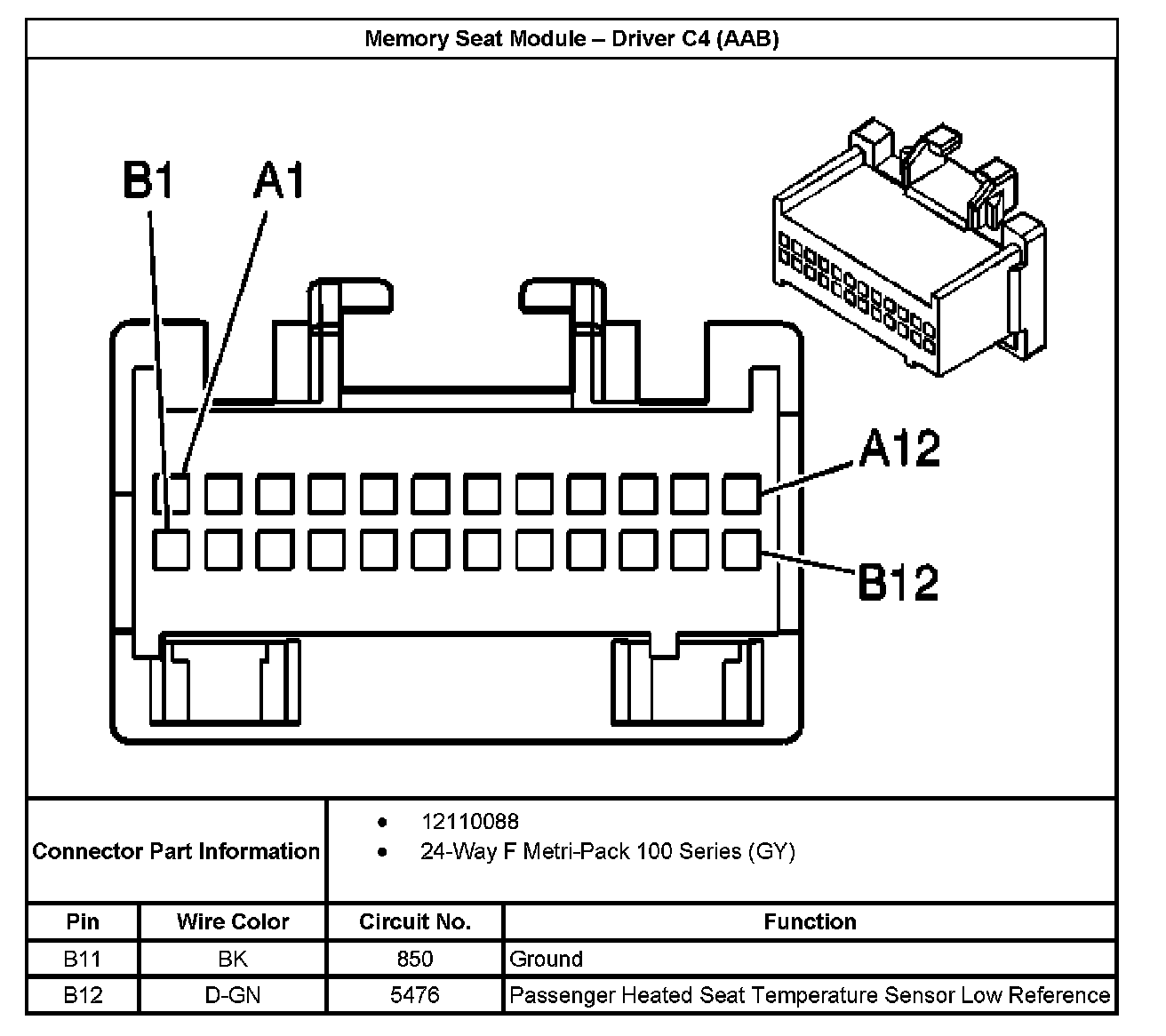 Memory Seat Module - Driver C4 (With RPO Code AAB) Part 1: