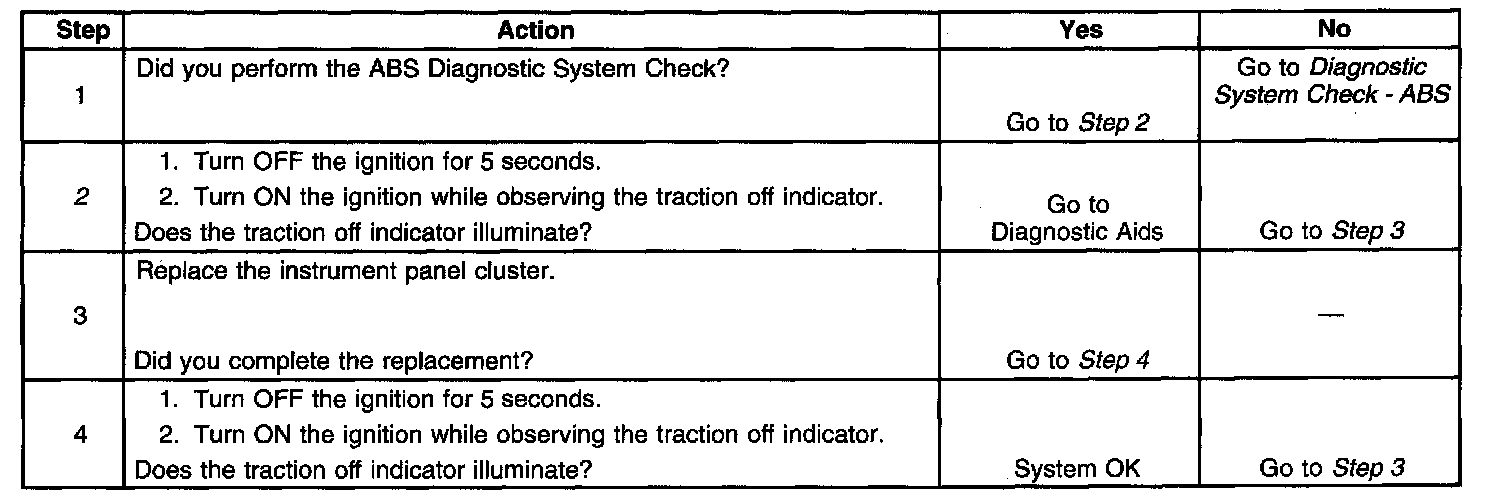 Replace the IPC if the traction off indicator intermittently fails to illuminate during the bulb check.