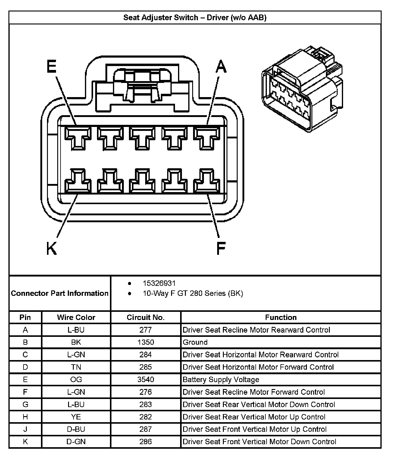 Seat Adjuster Switch - Driver (With RPO Code AAB):