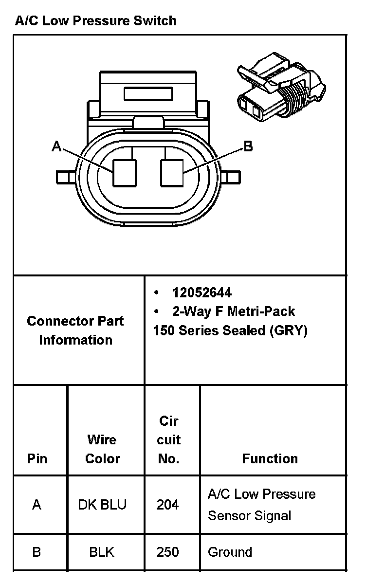A/C Low Pressure Switch (w/Automatic - HVAC System):