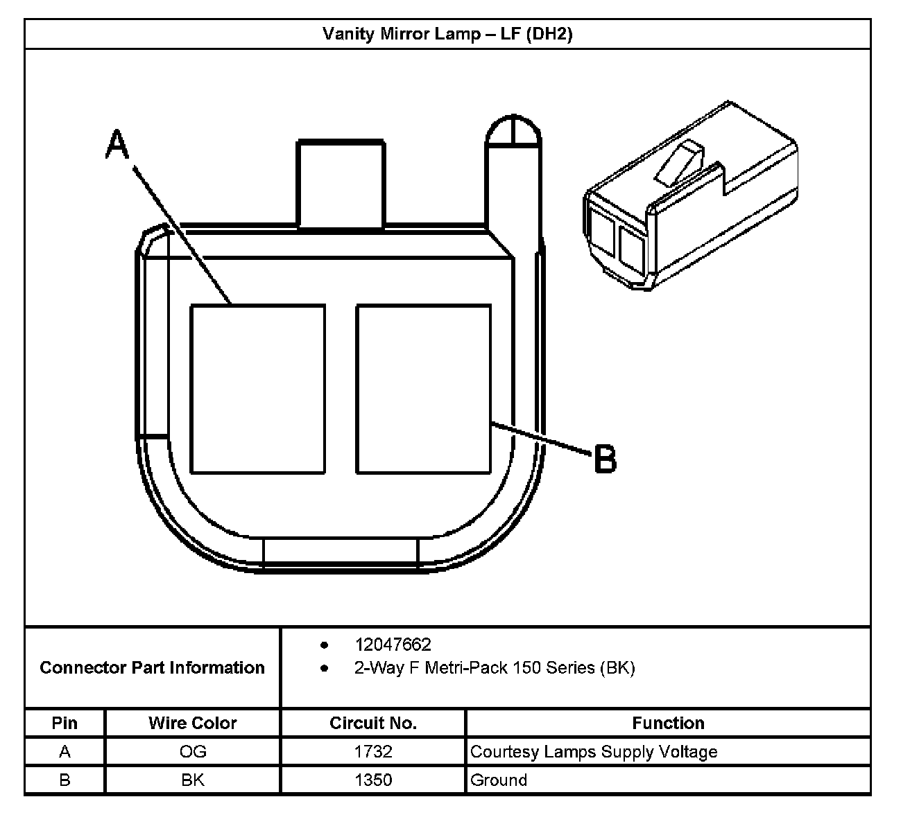 Vanity Mirror Lamp - LF (With RPO Code DH2):