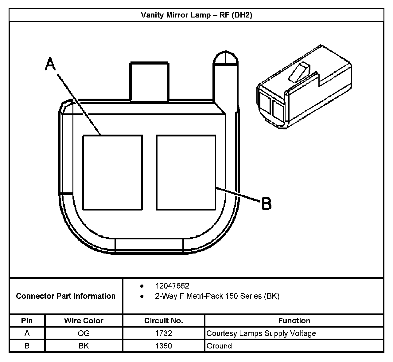 Vanity Mirror Lamp - RF (With RPO Code DH2):