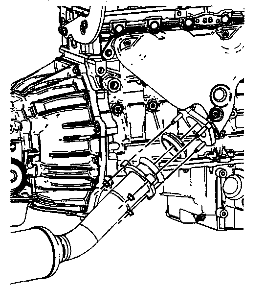 3. Install the bolt securing the catalytic converter pipe hanger to the transmission mount.