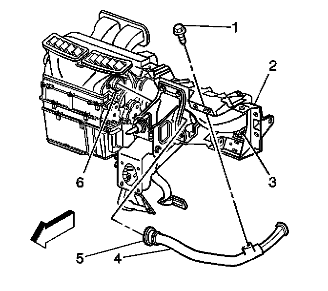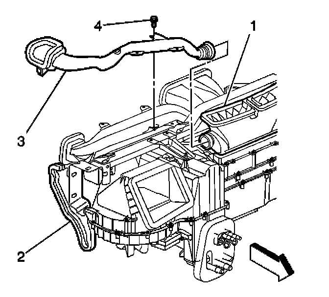 4. Install the retaining screw (1) to the driver side window defroster duct (4).