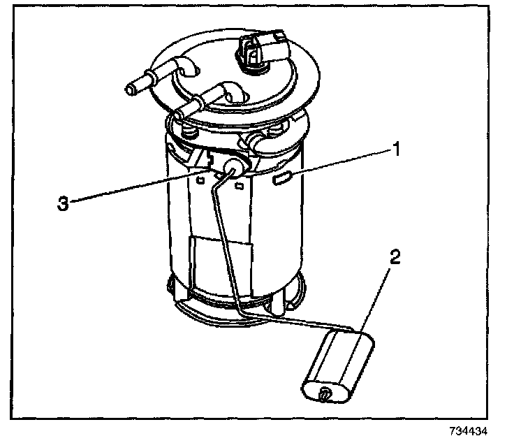 6. Squeeze the locking tangs and remove the fuel level sensor (3).