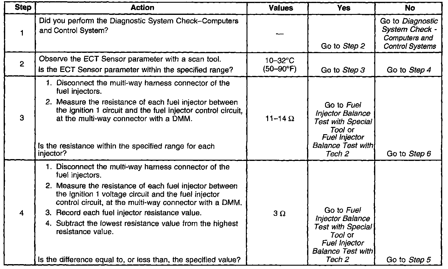 - Perform the fuel injector coil test within the conditions of the customer's concern. A fuel injector condition may only be apparent at a certain temperature, or under certain conditions.