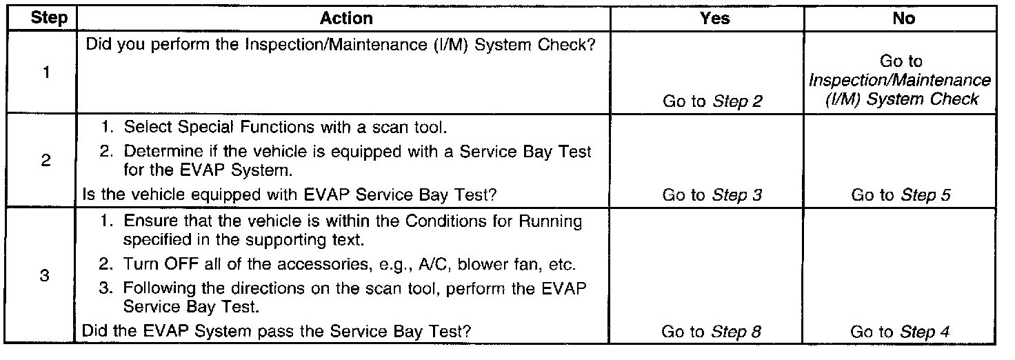 The purpose of this test is to satisfy the enable criteria necessary to execute I/M readiness diagnostics for the evaporative emission (EVAP) system. The test may be used to set the I/M System Status indicators to YES. Service Bay Tests are included on the scan tool for some systems depending upon vehicle make and model. The test is designed to allow the EVAP Diagnostic Tests to run in service bay conditions.