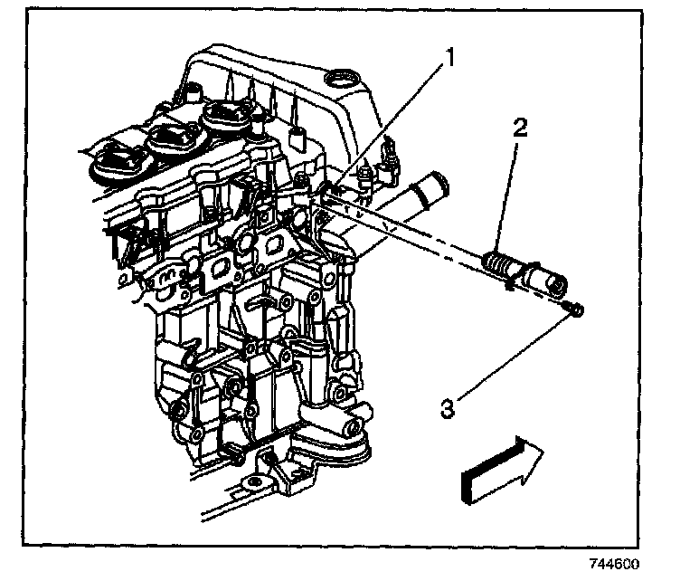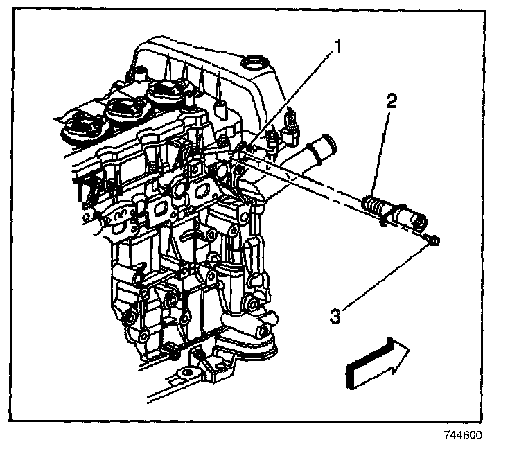 4. Remove the camshaft position actuator solenoid retaining bolt (3).