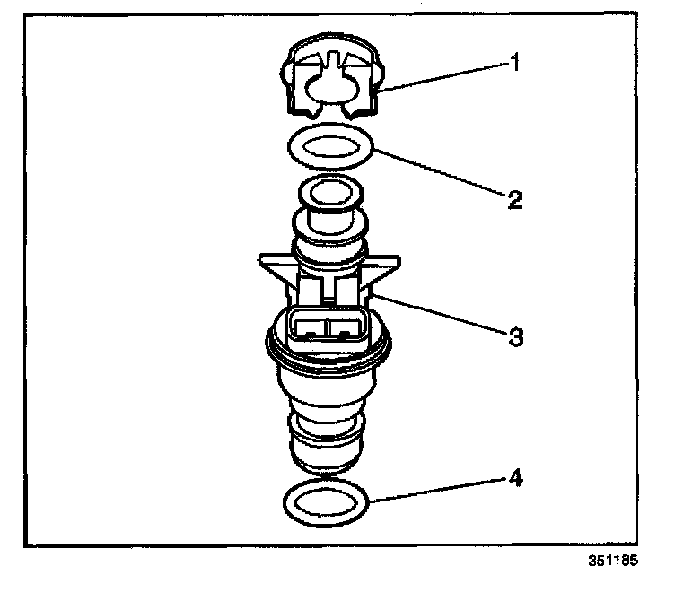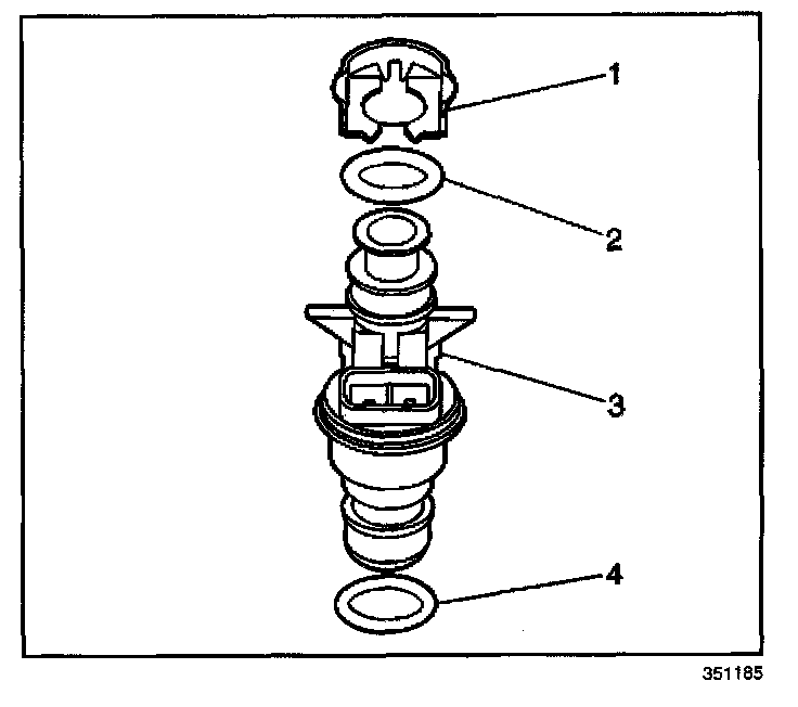 9. Remove the injector lower O-ring seal (4) from the spray tip end of each injector (3).