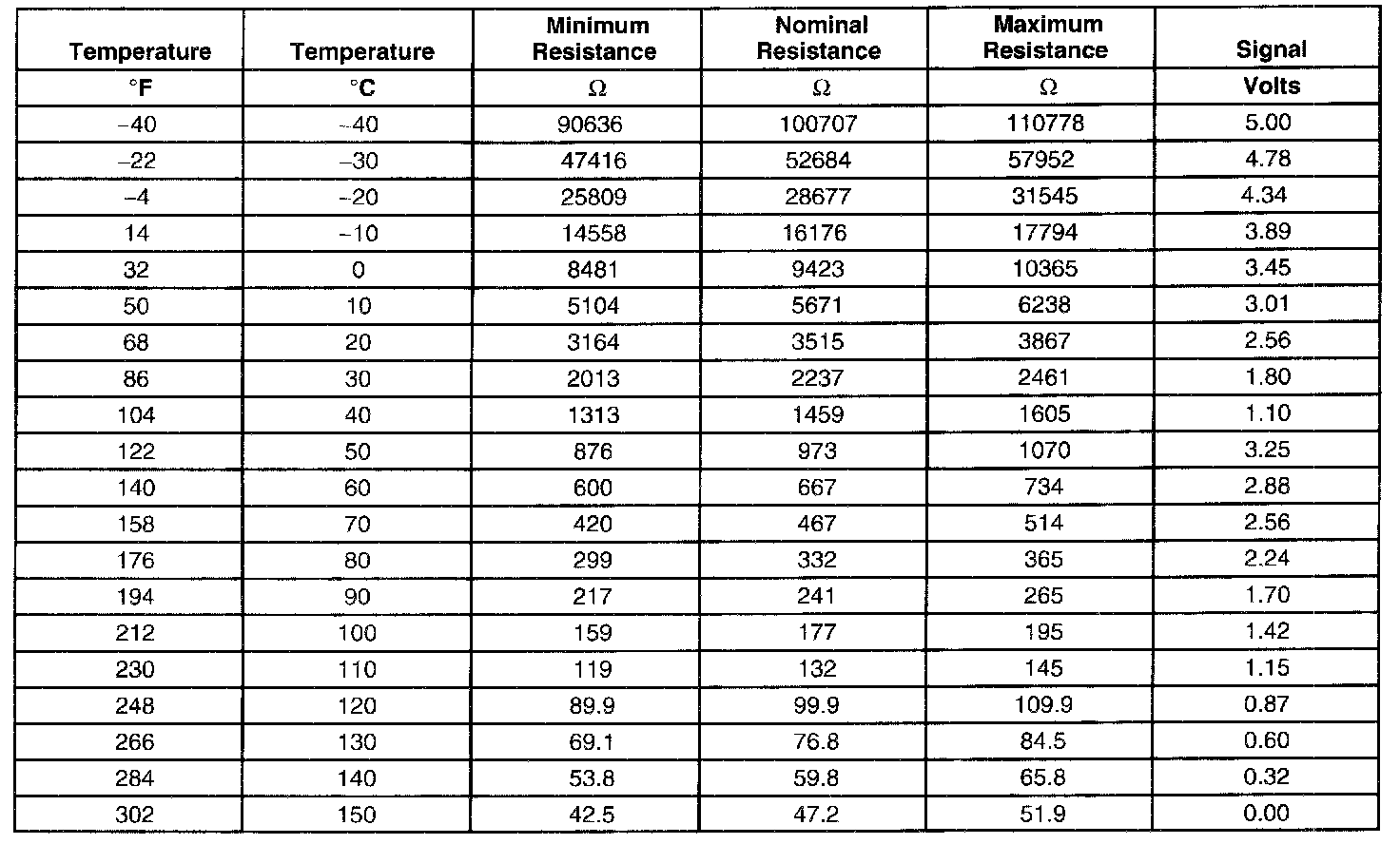 Transmission Fluid Temperature (TFT) Sensor Specifications: