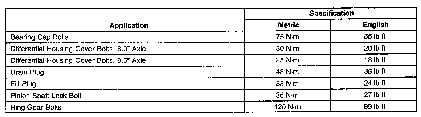 Fastener Tightening Specifications: