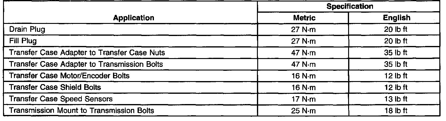Fastener Tightening Specifications: