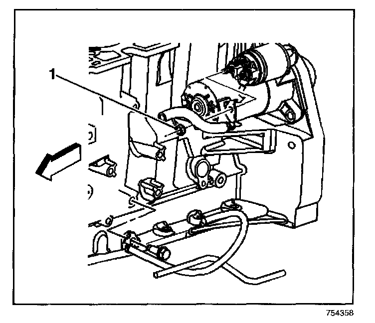 2. Install the battery positive cable to the generator and secure with the nut (1).
