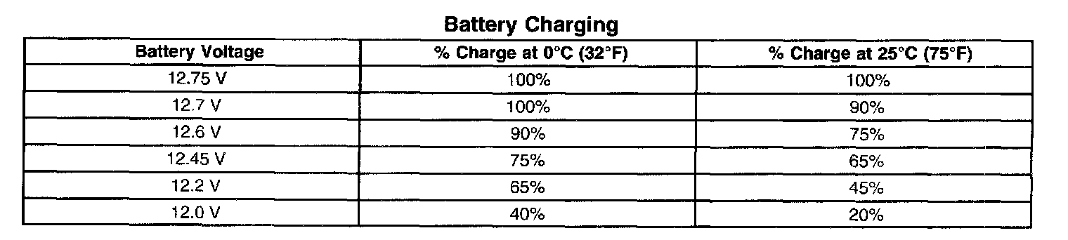 IMPORTANT: The table is accurate to 10 percent only after the battery has been at rest for 12 hours.