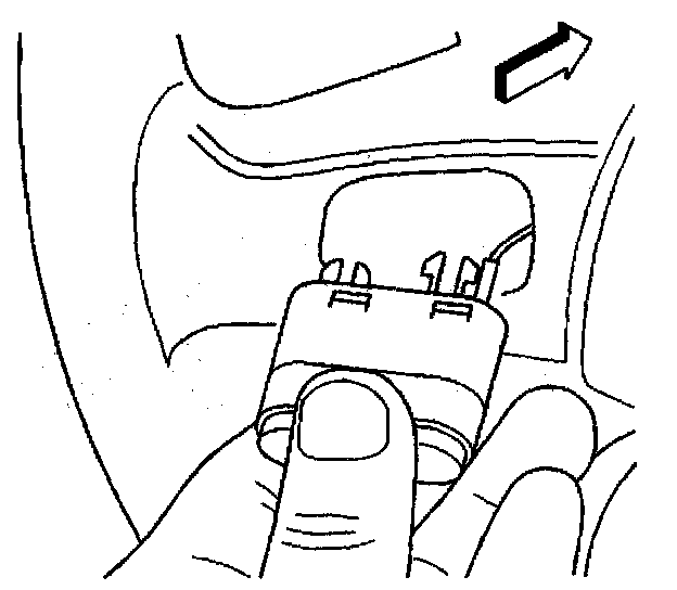 4. Position a blunt ended tool into the wire harness cavity (1) and apply moderate pressure in order to partially remove the steering wheel control switch from the steering wheel.