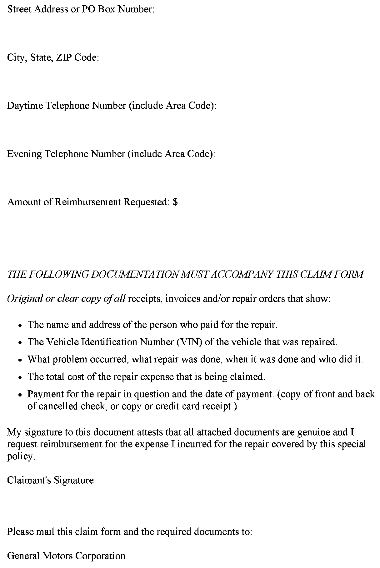 ^ Incomplete, you will receive a letter from General Motors identifying the documentation that is needed to complete the claim and offered the opportunity to resubmit the claim when the missing documentation is available.