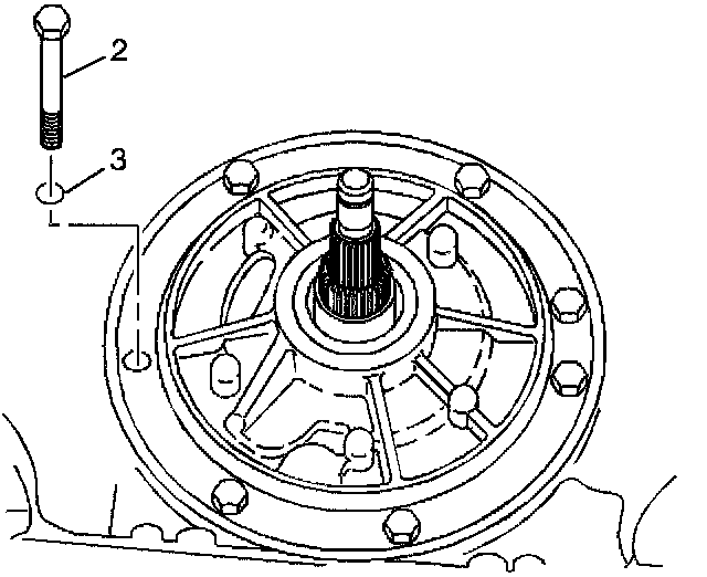 8. Install the pump to case bolts (2) with new O-ring seals (3).