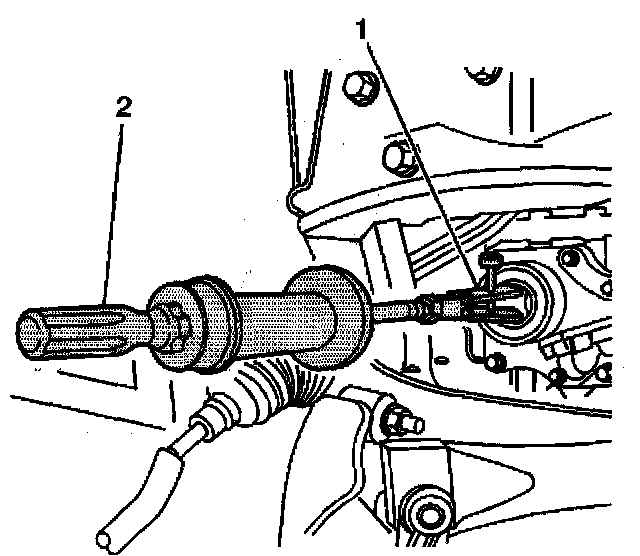 4. Remove the outboard, wheel drive shaft side, inner shaft seal by pulling on the J 6125-B (2).