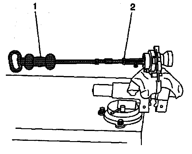 3. Install the J 29369-2 (1) and the J 6125-B (2) into the outboard, wheel drive shaft side, oil seal as shown.