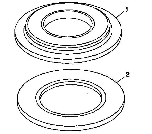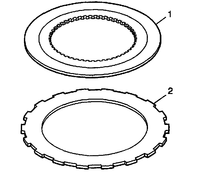 1. Do not clean the inner clutch discs (1) and outer clutch discs (2) in cleaning solvent.