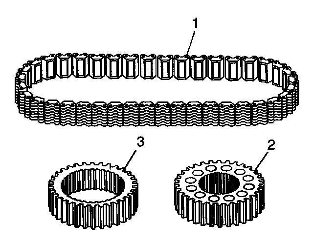 4. Inspect the driven sprocket (2) and the drive sprocket (3) for the following: