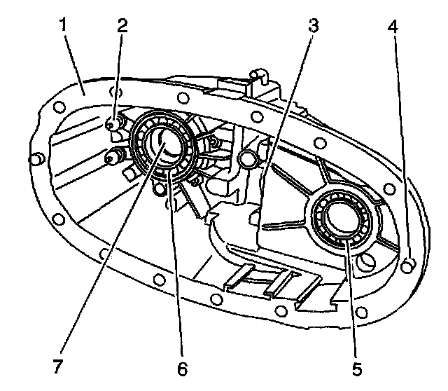 19. Inspect the oil pump bushing bore (7) for scoring or damage.