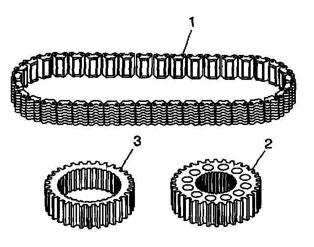 4. Inspect the driven sprocket (2) and the drive sprocket (3) for the following:
